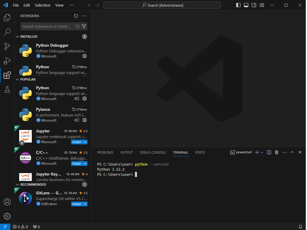 먼저, VS Code에서 Python을 사용하려면 Python 확장 프로그램을 설치해야 합니다.