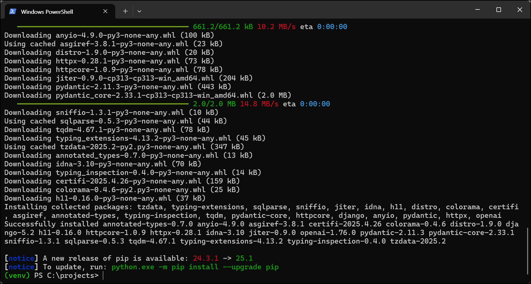 ✅ (윈도우는 --break-system-packages 같은 옵션 필요 없습니다.)