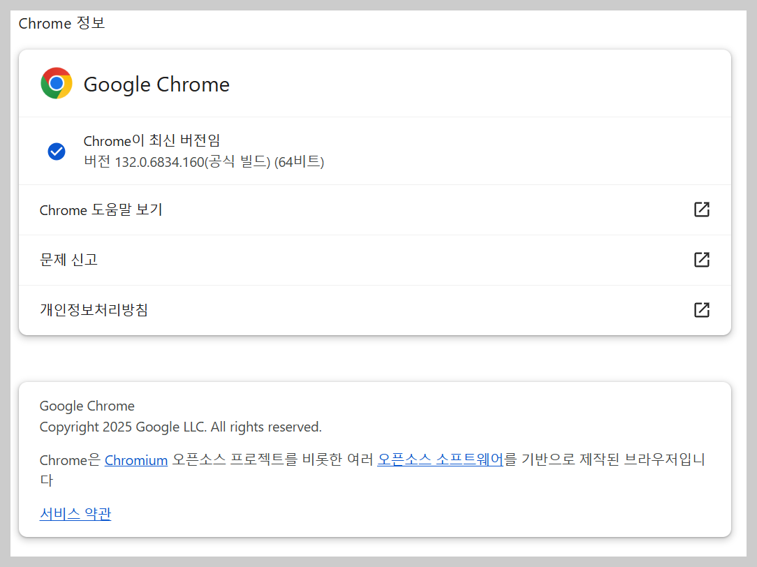 chrome://settings/help입력) - 해당 버전에 맞는 Chromedriver 다운로드 및 압축 해제