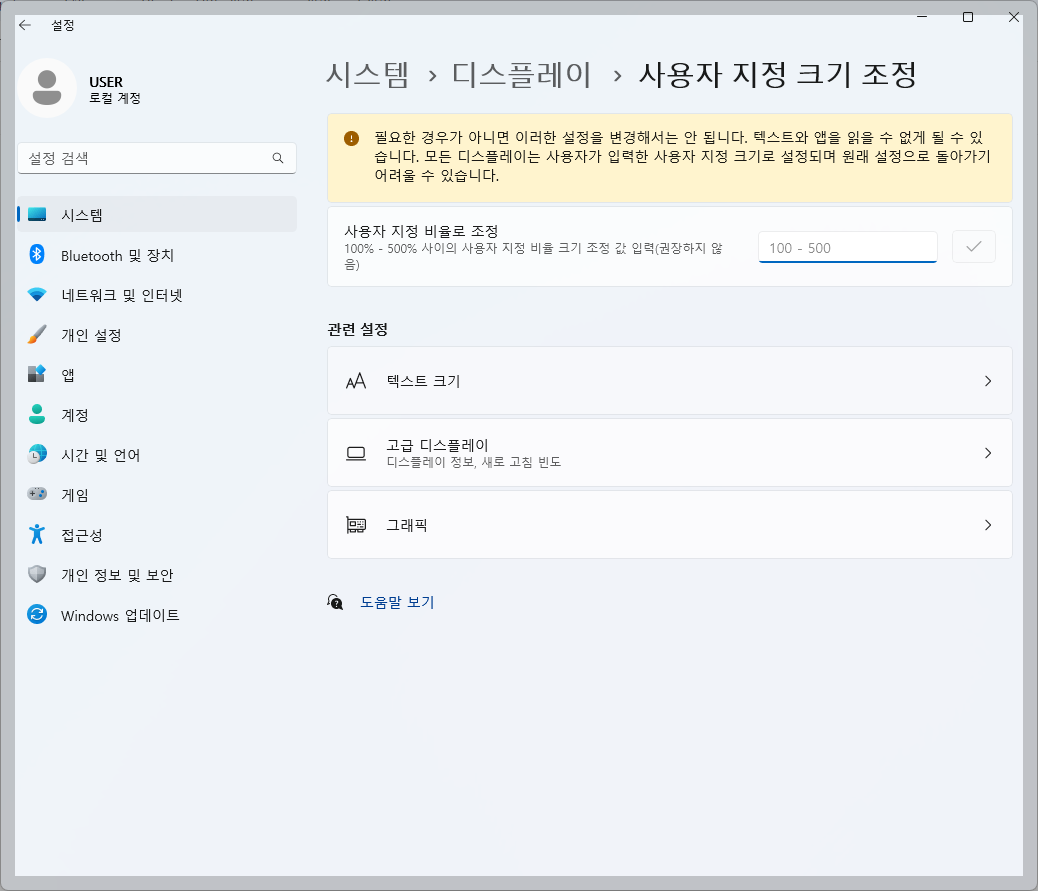 - 맞춤 배율을 잘못 설정하면 UI가 깨지거나 너무 커질 수 있음.